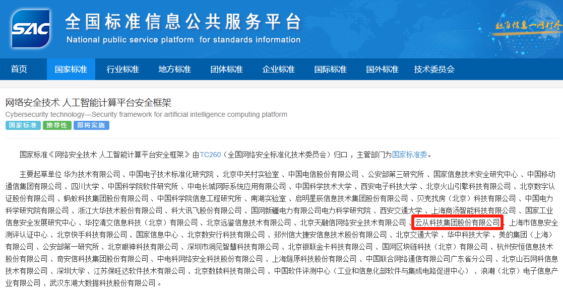 近日,國家標準GB/T 45958-2025《網(wǎng)絡(luò)安全技術(shù) 人工智能計算平臺安全框架》正式發(fā)布。該標準由全國網(wǎng)絡(luò)安全標準化技術(shù)委員會歸口管理,華為技術(shù)有限公司牽頭,云從科技作為核心起草單位之一,深度參與了標準制定工作。 這項將于2026年2月1日正式實施的國家標準,為人工智能計算平臺建立了系統(tǒng)化的安全框架,規(guī)定了安全功能、安全管理和角色安全職責,將有效應(yīng)對硬件漏洞、訓練數(shù)據(jù)泄露、對抗樣本攻擊等新型安全威脅。